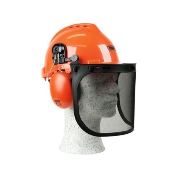 Serre-tête (casque antibruit) monté sur casque de protection pour l’industrie.